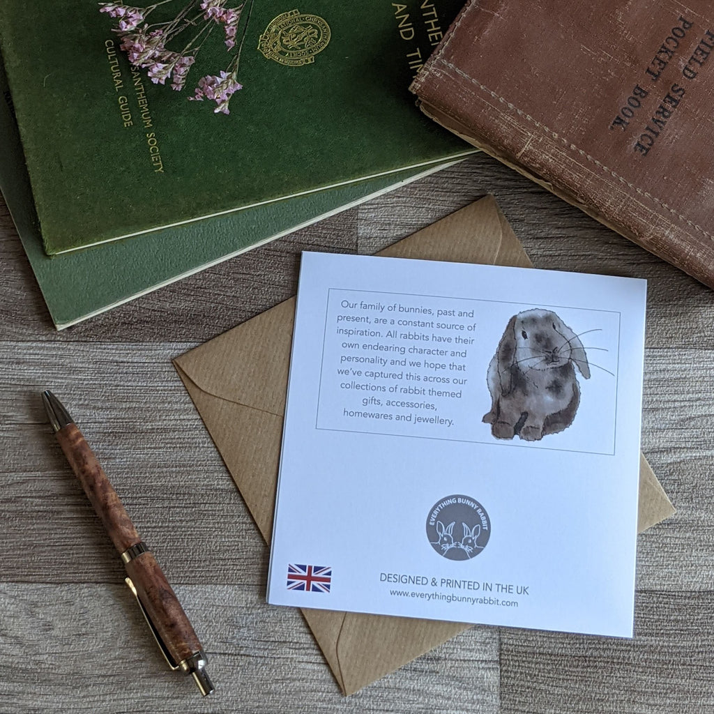 Designed here at Everything Bunny Rabbit HQ and printed in the UK, our rabbit Mother's Day card is perfect for adding that extra little hop of bunny love to the big day. Simply add some special words inside, a sprinkling of fluffy kisses and start spreading some bunny love!